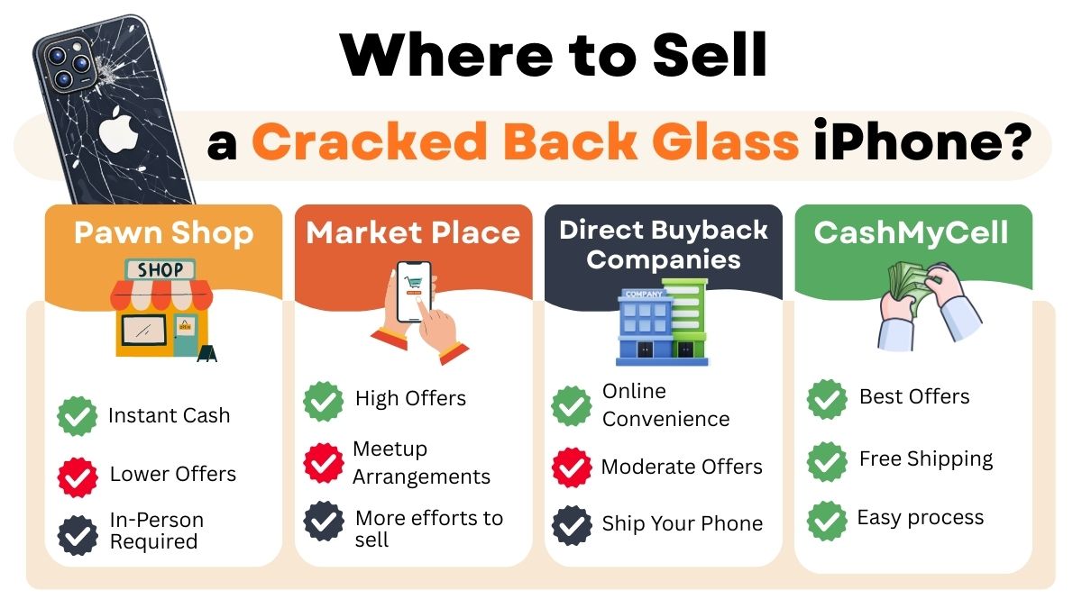 Selling on marketplaces (eBay, FB Marketplace) can sometimes get you a higher price, even for cracked back glass iPhones.